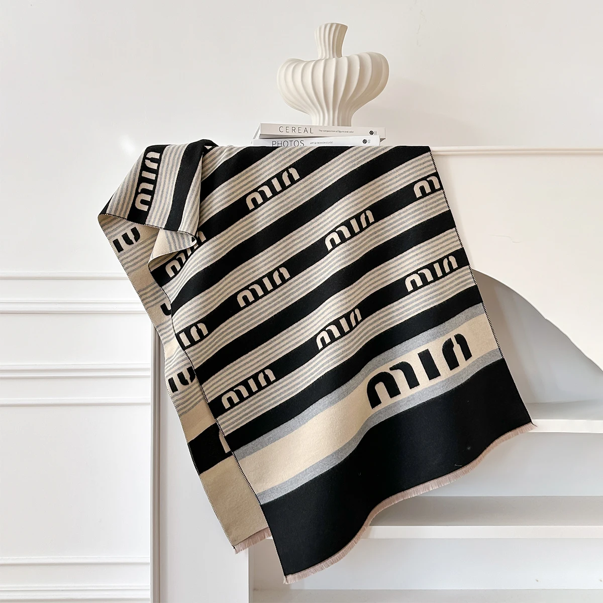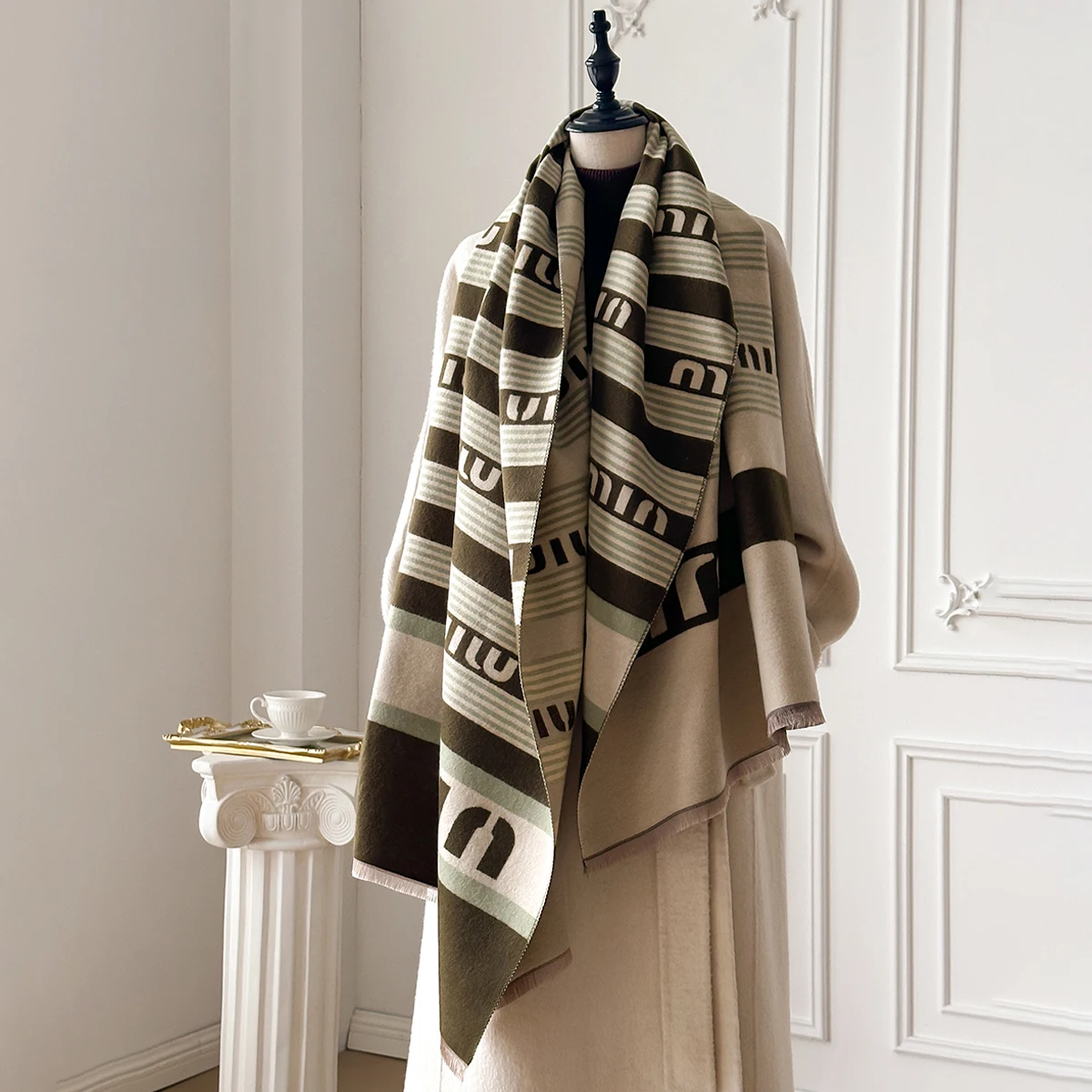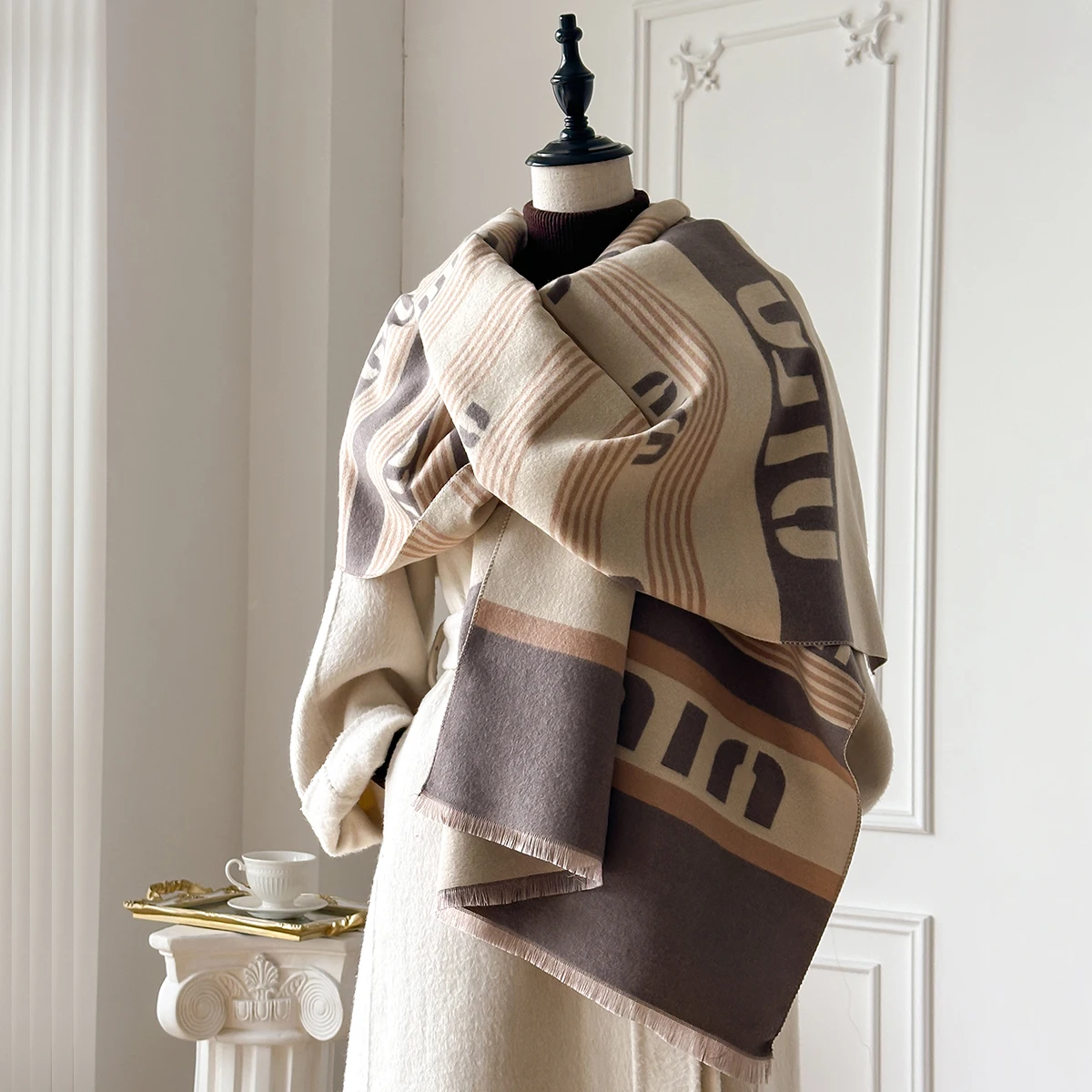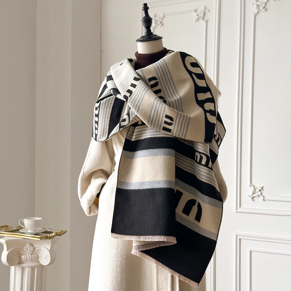 New Brand Elegance Two-Sided Print Scarf Soft Warm Fringe Pashmina Shawl Autumn and Winter Outdoor Coldproof Windproof Blanket