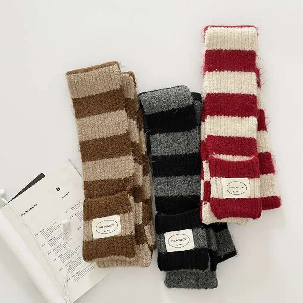 Red Stripe Soft Wool Knitted Scarf Women Winter Korean Thick Warm Scarf Fashion Y2K Harajuku Scarf Shawl Christmas New Year Gift