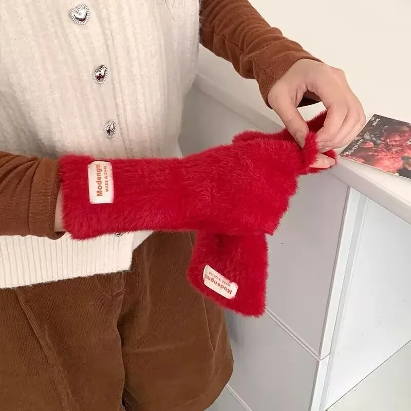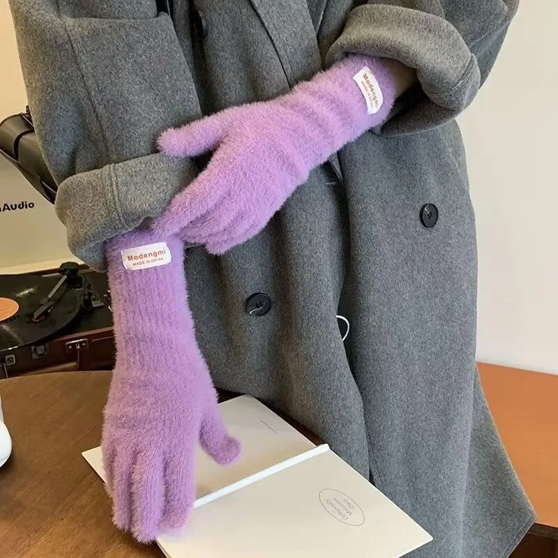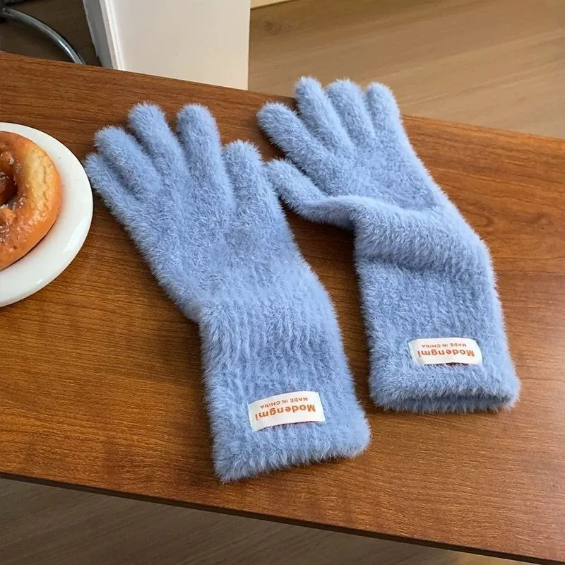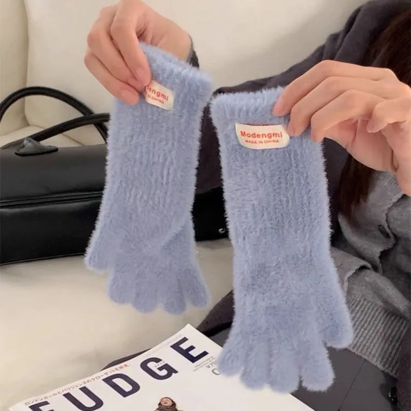 Winter Women's Gloves Thick Plush Knit Gloves Warm Velvet Mittens Solid Outdoor Ski Drive Touch Screen Gloves Christmas Gift